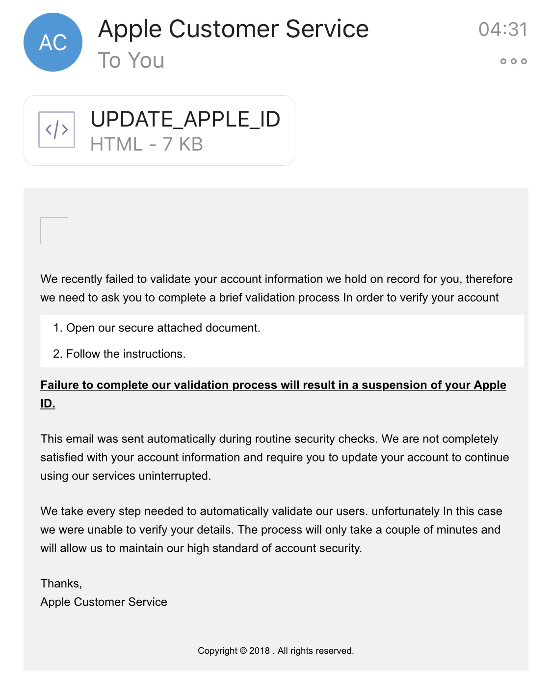 Kirkville I Almost Fell For This Apple Id Phishing Email. Under steve jobs, apple developed technology like the ipod, ipad and iphone. You may not find the direct email address to write a complaint or ask for a refund. 4 contacting apple customer care service for generalized services. Apple is a global consumer electronics company from northern california. Apple customer service is twice as unique and caters to all your needs from your room without as much as living your comfort zone. Official apple support you can email them via itunesstoresupport@apple.com if you have any questions ab. Apple customer support call center phone number: Apple's support team can answer any questions that you have about apple products, hardware (iphone, ipad, etc), software (ios, macos, facetime, pages, etc) and services ( icloud , apple music, imessage , etc.). Please note that live chat is available, although it may not be available in all countries. Customer support details for apple. Tell us what problem you're writing them about and we can give tailored advice on what to do. Apple call center operating hours: Apple started as a computer company but shifted to include electronic consumer goods in 2007. You contact apple via their support page, emailing them is incredibly inefficient when you can chat to an actual person instantly instead. Council regulation no 1351/2014 dated december 18, 2014, the sale of apple products and/or provision of services related to apple products in the crimea region is suspended as of february 1, 2015.