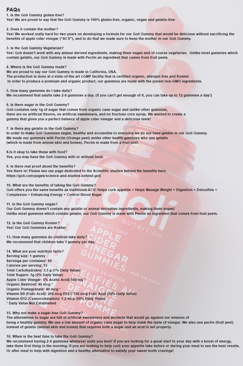 Research doesn't back most of these claims. The goli gummy is the world's first apple cider vinegar gummy. Alkaline ph level in your skin. Two to six goli gummies daily, will provide the dosage of apple cider vinegar that has been shown effective in clinical trials. According to webmd, vinegar has been used as a remedy for centuries. The ancient greeks treated wounds with it. Our goal was to create an easy, nutritious and delicious way for everyone to incorporate apple cider vinegar into their daily routine. Supplements in pill form contain a dehydrated form of the vinegar. Goli apple cider vinegar gummies side effects. Apple cider vinegar would, of course, be the active ingredient in the goli gummies. That way, they have a direct positive impact on your overall health. Apple cider vinegar gummies contain 100% organic and natural apple cider vinegar obtained from a clean facility. The goli apple cider vinegar gummies have finally hit the market and everyone is going crazy! We were unable to find any side effects associated with apple cider vinegar supplements. I hadn't thought about apple cider vinegar since, but then a jar of goli nutrition apple cider vinegar gummies ($13, originally $19) — yes, gummies — landed on my desk from a press mailing. Goli nutrition apple cider vinegar gummies do contain pure apple cider vinegar, but it is in a concentrated form. This is made by the fermentation of apple cider by yeast. Apple cider vinegar gummies by goli. Research doesn't back most of these claims. Everybody loves these gummies for weight loss! Being incredibly popular in natural health care, apple cider vinegar (acv) provides innumerable health benefits. Goli gummies are chewable gummies that promise to give you the benefits of apple cider vinegar (acv) without the bitter taste. So, if you're looking to find a great tasting way to incorporate more apple cider vinegar and the benefits it can offer into your diet, then goli gummies 100% work! Goli gummies do not use gelatin; If the yeast is exposed to oxygen you actually get hard cider, with alcohol as the main byproduct of fermentation. These are the first apple cider vinegar gummies that were specifically designed to make the swallowing a little easier on your taste buds whilst still providing you with a variety of benefits. Certified organic, allergen free and kosher; Goli, called the world's first apple cider vinegar gummy is heavily promoted on the internet by influencers and on tv. It's a gummy that tastes better than the liquid form. Goli apple cider gummy is made with real apples; This is a good way to take any fat burner, because it has 3 daily servings that keep the effects maintained throughout the day.