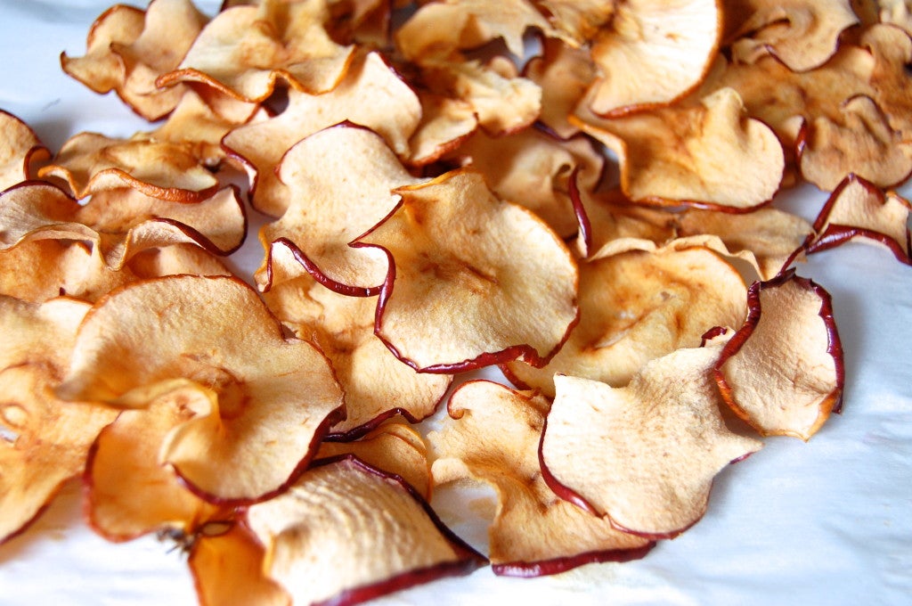 Baked Cinnamon Apple Chips The Vegetarian Ginger. Flip slices and continue baking 1 1/2 hours longer or until completely dry and crisp (they will not crisp more upon cooling). So i had to figure out how to do it my own way! Start by removing the core of the apples. Timing will vary depending on the moisture content of the apples and the thickness of the slices. Bake the apple chips in a 200ºf oven for 1 1/2 to 2 hours, until the apples are dry to the touch. Plus, they don't require any effort and aren't too expensive. Whichever your kind of apple you choose, it depends on your taste. Baked apple chips are one of the best healthy snacks for a weight watcher and a health freak. My grandmother always made apple and banana chips with a dehydrator, and they were amazing. The time in the oven will vary depending on apple type and juiciness, but once they no longer have that gummy feeling akin to dried apple rings, they're ready.