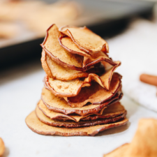 Apple chips are thinly sliced apples that are lightly sprinkled with cinnamon, then baked until pleasantly crisp.