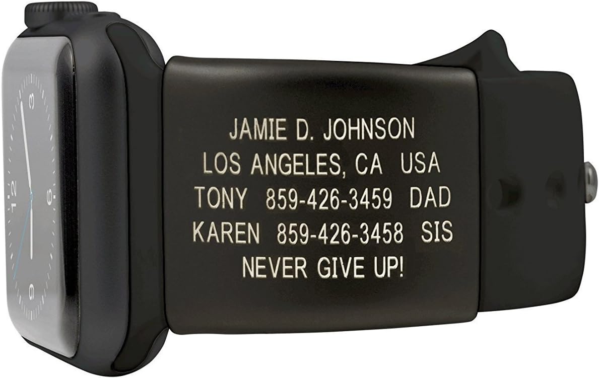 Amazon Com Road Id Premium Id Tag For Apple Watch Clothing. Fits all apple watch sport band series. Include your information, emergency contacts and more. If my ride goes long the current app tells me on my apple watch i have 2 minutes left. • made from medical grade stainless steel. Only reason it's not a 5 star is the app could use some better integration with the apple watch. Perfect for those with diabetes, alzheimer's, allergies, and more, every id. Apple watch id sport | graphite. Up to 5 or 6 lines of customizable text. Fits series 1, 2, 3, (38mm and 42mm), as well as series 4 and 5 (40mm and 44mm) apple sport (silicone) watches. Road id helps save lives and provide priceless peace of mind by telling first responders how best to care for you in the event of an emergency. • sleek, inline attachment that looks great and could save your life in an emergency. Apple watch id sport | graphite. The road id app is perfect for runners, cyclists, kids, hikers, walkers, skiers and basically anyone not glued to the couch. It simply slides right on, snug as can be. The silicone clasp medical id bracelet keeps your vital medical info on hand and easily accessible.